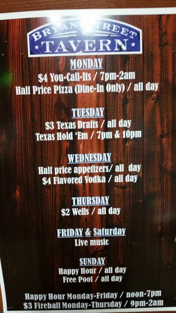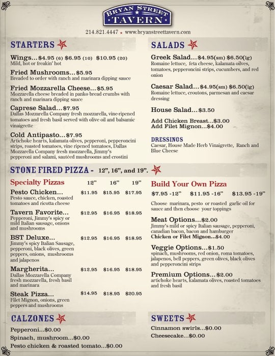 Bryan Street Tavern Menu